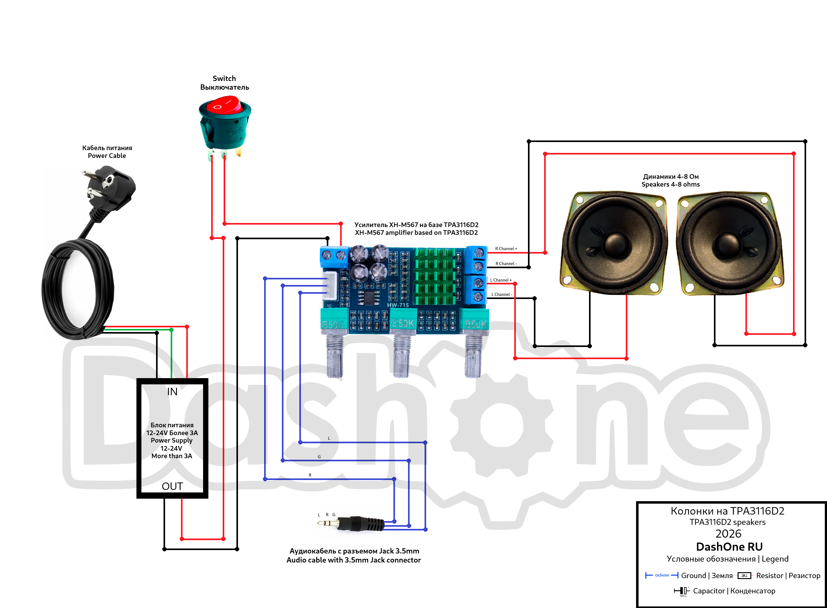 модуля XH-M567 с микросхемой TPA3116D2. Устройство собрано в корпусе,